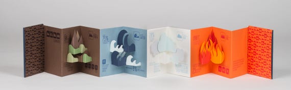 Elements Hand Bound Pop Up Book Featuring The Four Elements Earth Water Air And Fire