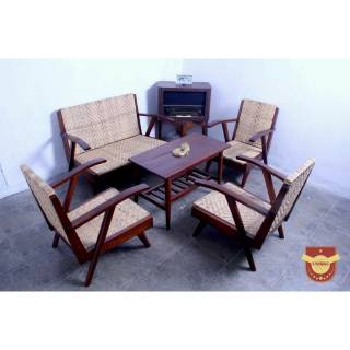 Terjual Satu Set Kursi Meja Tamu Jawa Kuno Antik Kayu Jati Rotan