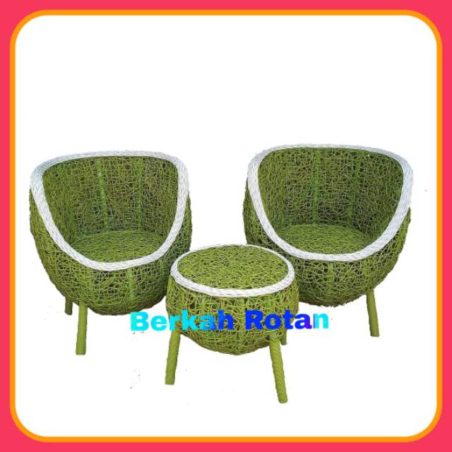 Kursi Teras Rotan Warna Hijau Daun Sintetis Furniture Home